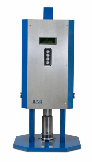 Für das Rammen der Prüfkörper hat Jung den automatischen Rammapparat RJ2 entwickelt. Er ist die seit langer Zeit erwartete Alternative zu Geräten mit manuell betriebenem Exzenter, dessen Ergebnisse bisher von Person zu Person unterschiedlich waren.